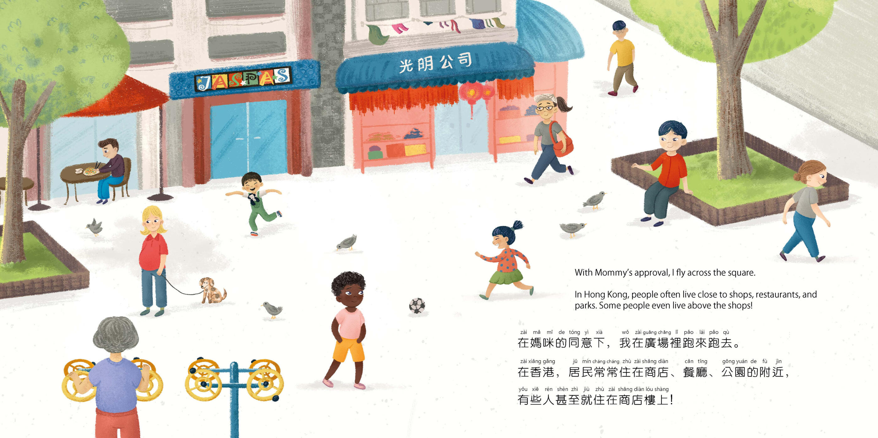 It’s a gloomy day, but Lele is eager to go outside and play. Tag along with Lele and Monkey as they head to the playground in this delightful Hong Kong story.Perfect for building everyday social language — with simple phrases children can use in real life.