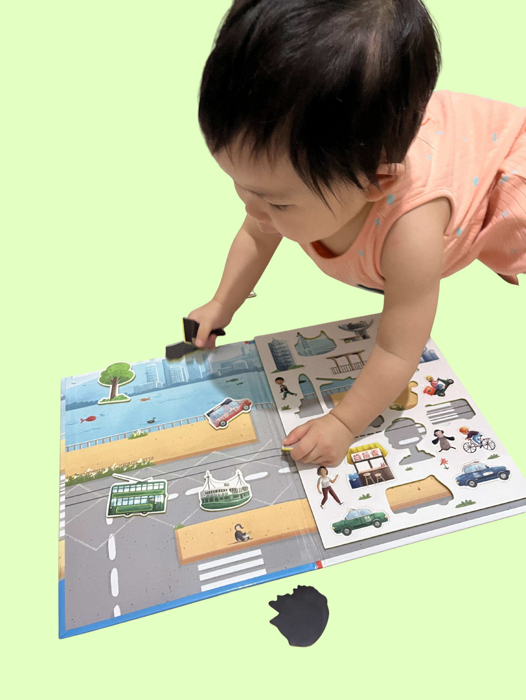 Explore Hong Kong with Lele in this interactive magnetic play book! With 20+ magnets, kids can follow along with the story or create their own scenes.One of our most popular items, it features Hong Kong-themed artwork (trams, ferries, food trucks, and more).Perfect for travel, quiet play, and imaginative storytelling.Book Details